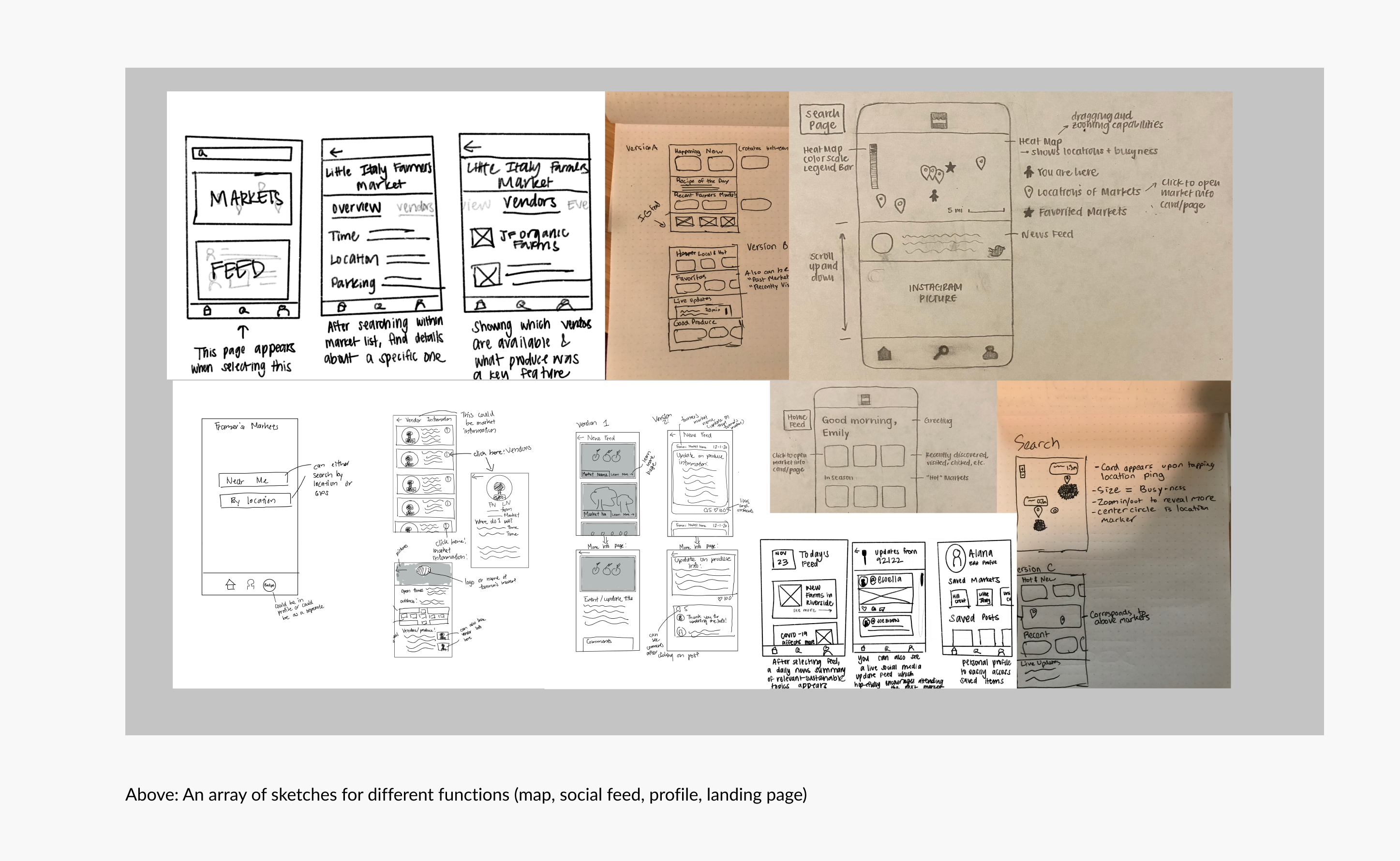 Along with interviewing a range of potential users, we also were able to talk to a current vendor at farmers markets to understand their perspective and see if there were ways we could help them connect to their current or potential customers.