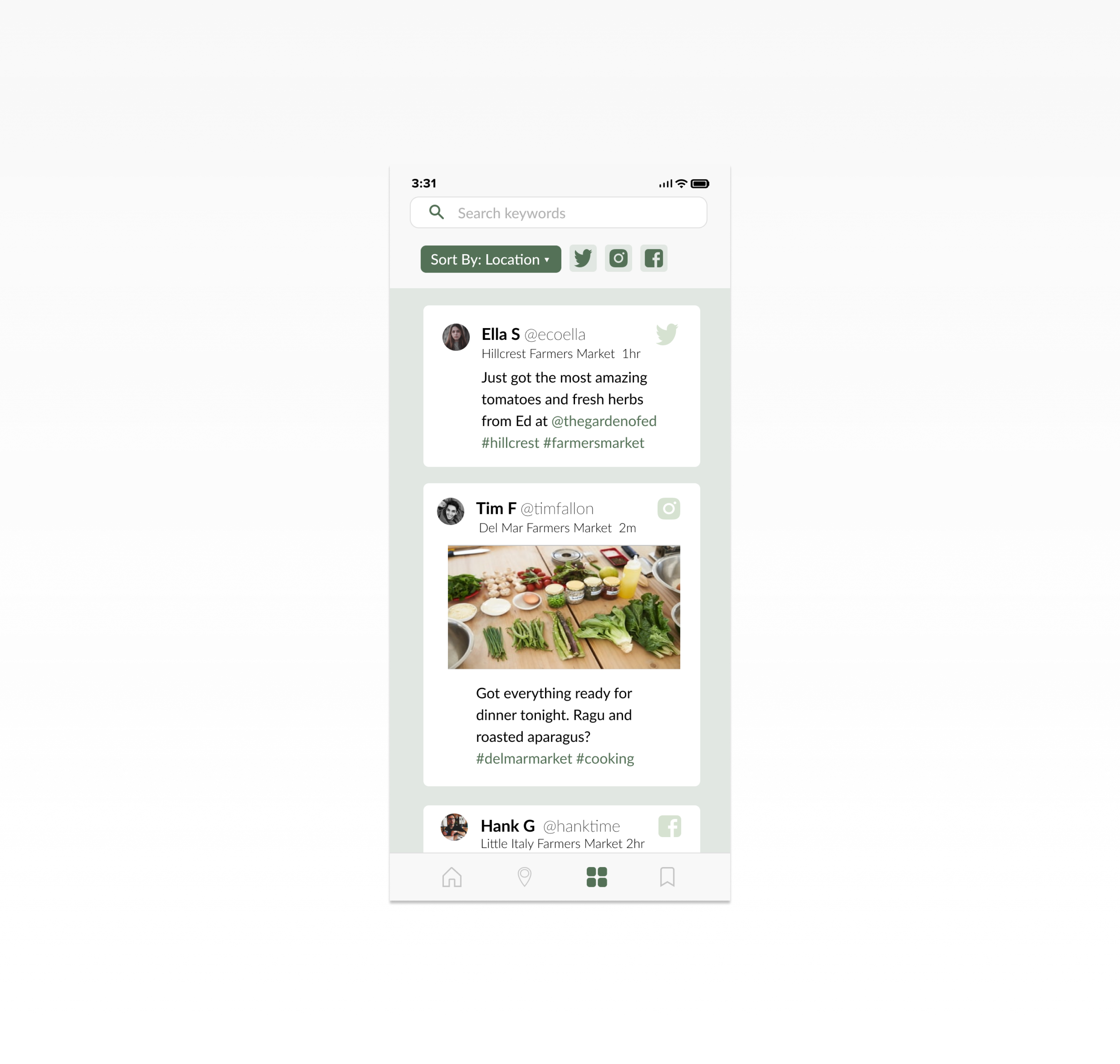 Throughout the design process we discussed many possible features that we believed integral to the farmers market experience. This included features like recipe centers, grocery lists, personalized recommendations and ways of elevating engagement with the platform. Through iteration and testing, we came to the conclusion that the majority of these features were not necessary for the average user to accomplish their goals of grocery shopping. However, the social feed was the one feature we kept even though it doesn't directly help the user plan out their farmers market trip. The main value is that it centralizes relevant posts, and keeps our user connected with their community.
